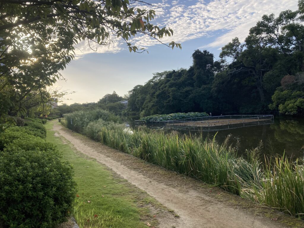 616晴れ 21.1℃ 6km/h SEの風 湿度82% 日の出612 日の入り1803