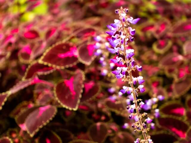 花言葉「かなわぬ恋」は、コリウスの穂状の花が咲き始めると美しい葉色が薄くなることから、花が摘み取られることから名付けられました。