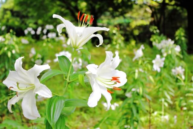 「威厳」の花言葉は、ユリの堂々とした花姿から名付けられています。一際大きく豪華に咲くユリの品種であるカサブランカにぴったりの花言葉です。