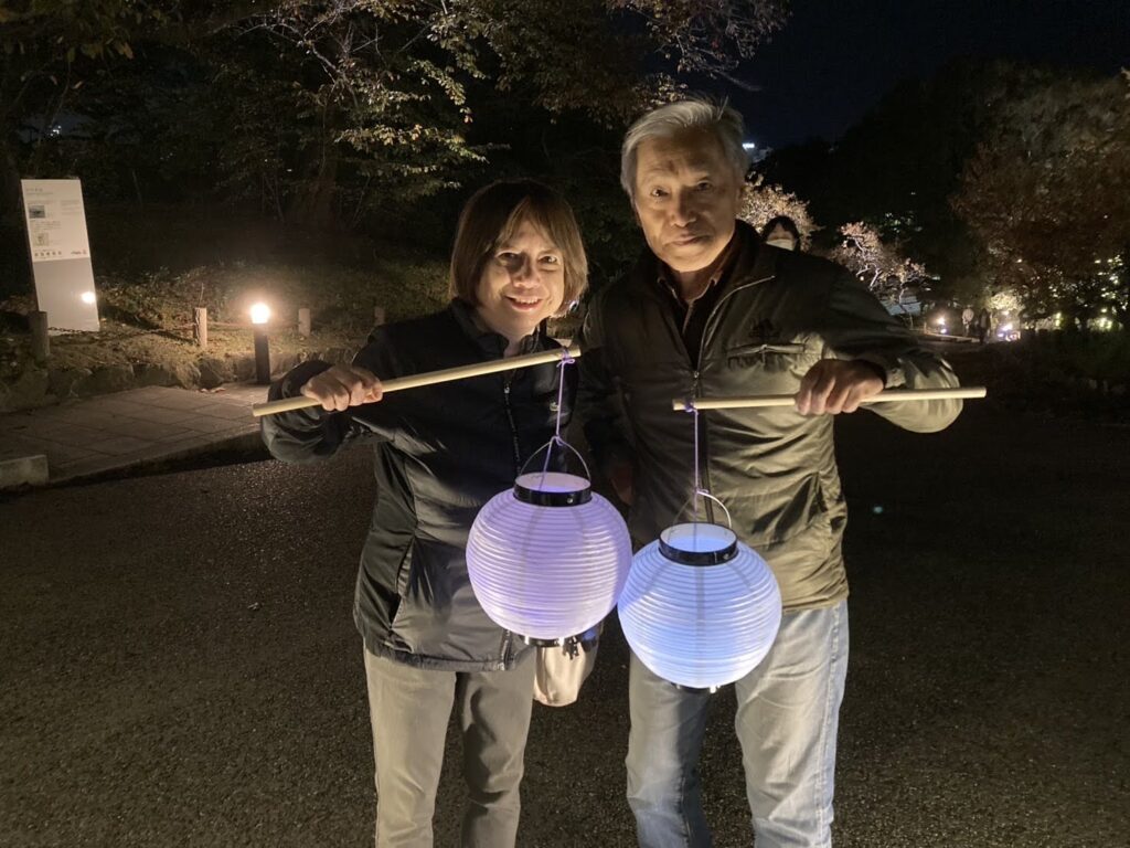 提灯を借りて公園を回る。