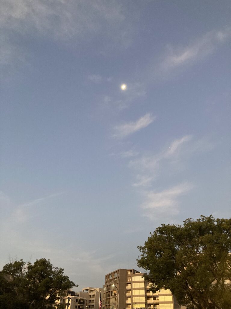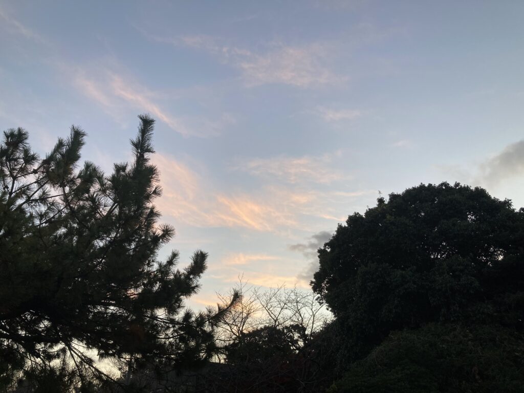 619晴れ 6.1℃ 4km/h ESEの風 湿度80% 日の出711日の入り1710