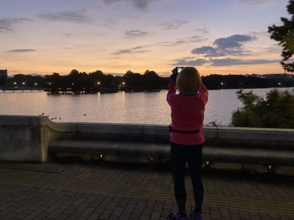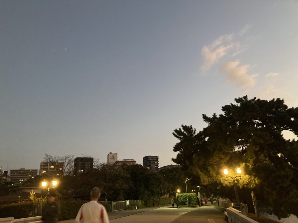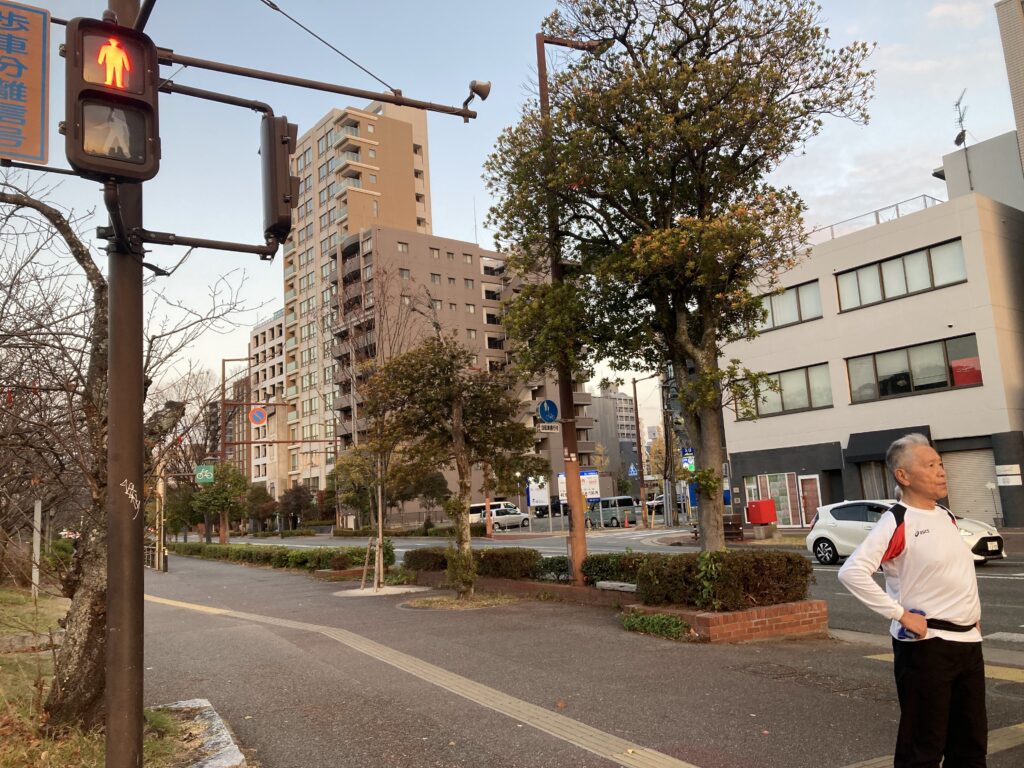 朝ジョグ寒い!暗い!風強い!古賀さん、川島さん、山ピー、セラさん夫妻、榮さん、よっちゃん夫妻に会う。