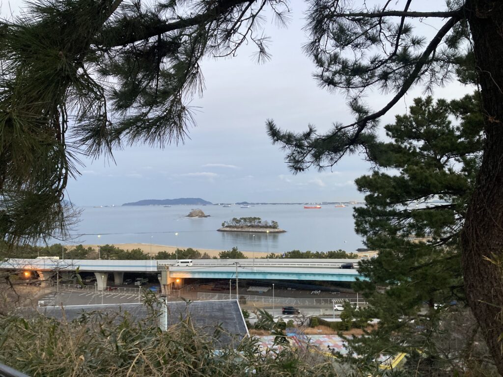 西公園うぐみ亭の展望台から志賀島方面をみる