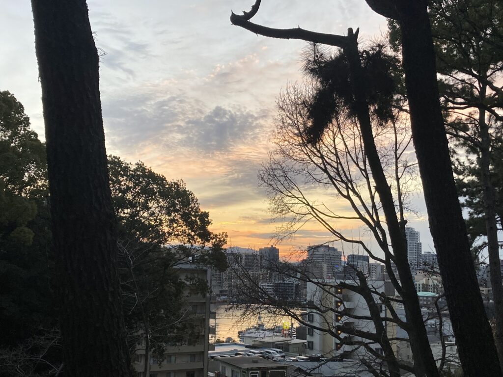 西公園展望台は工事中で日の出がみえん