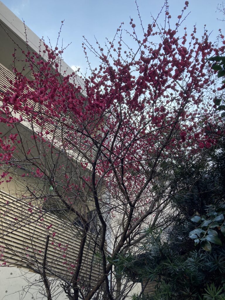 我が家の梅は満開だ。
