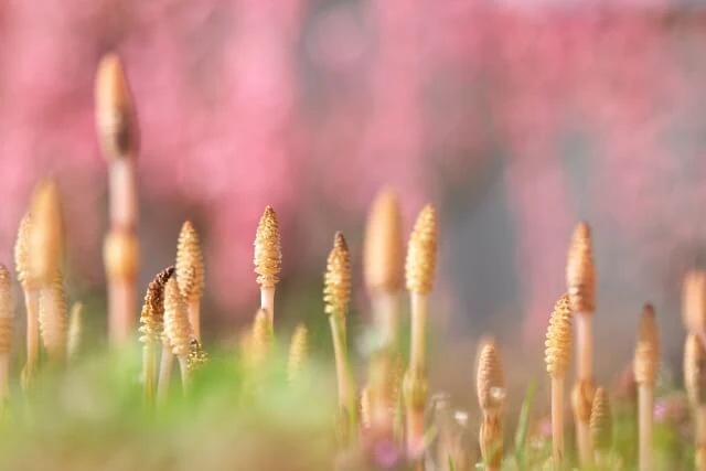 花言葉「向上心」「努力」は、地中から空に向かって真っすぐ上に伸びる姿が由来です。「意外」「驚き」の花言葉は、変わった姿のツクシが一斉に地中から出てくる様子から名付けられています。