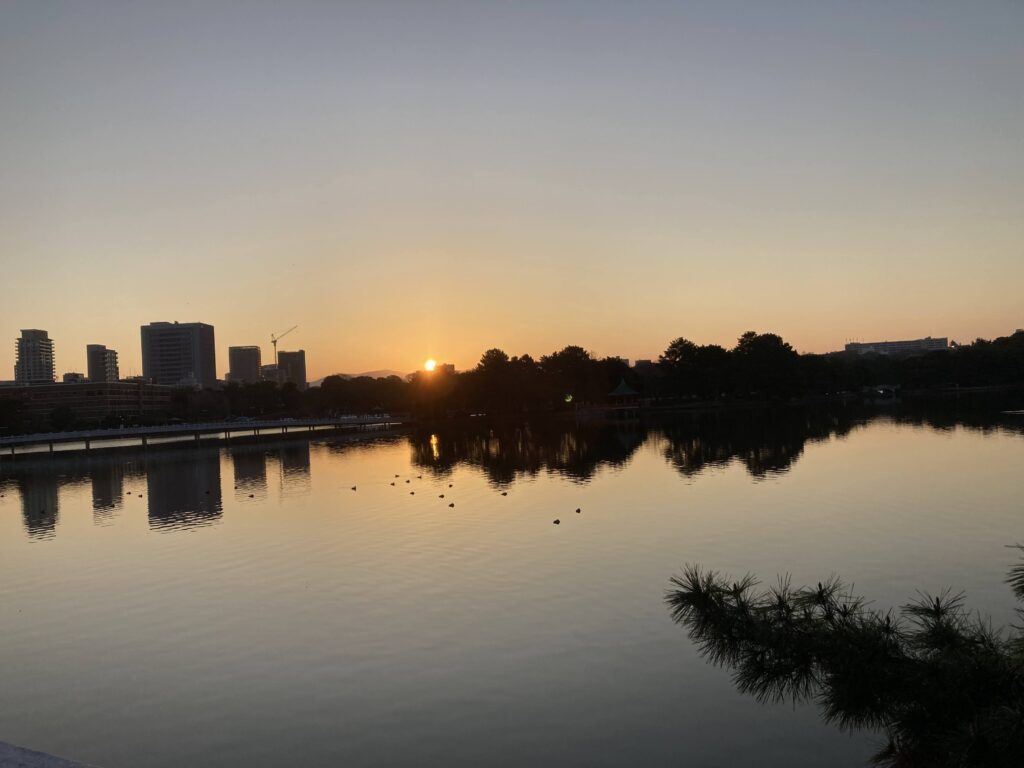 ジョグした。美術館、日本庭園、大濠公園、どんぐり公園、観月橋いろんなところで鶯の鳴き声いっぱい聴こえた。東に向かって走るときはサングラスが必要だった。