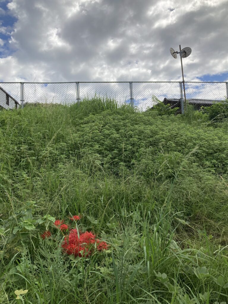 橋の下で雨宿り。一週間ぶりに行くと彼岸花があちこちに咲いていた。