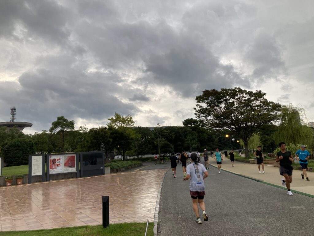 太極拳をするときになってポツポツ雨が…その後走り出したが、また大雨になるかも!と思ってしまい ショートカットして旧コースジョグした。帰り着くまで結局大雨にはならなかった…走り足らず! あっこちゃん、山領さんも走ってた。挨拶交わす。